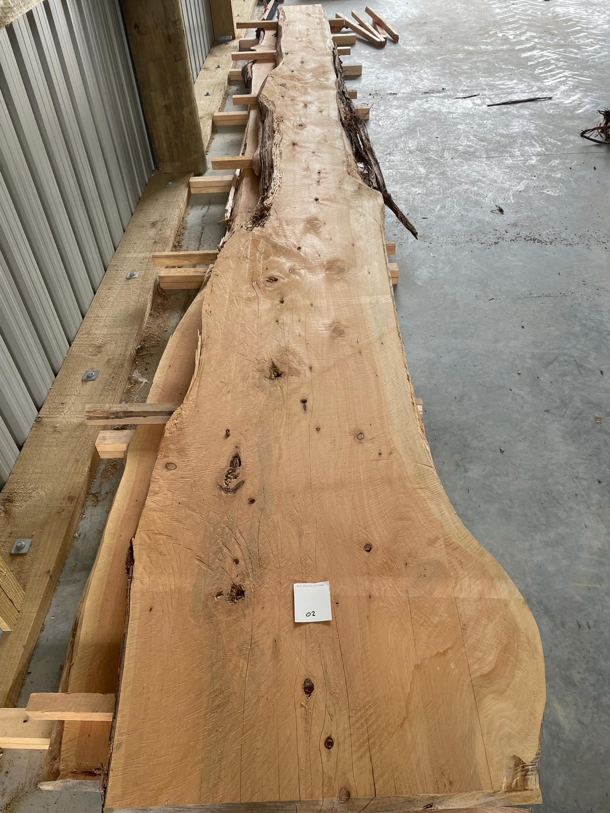 Macrocarpa Slab - No. 14 Width: 260 - 530 mm Thickness: 53 - 59 mm Length: 6500 mm Do enquire if you wish to purchase the full or part of this slab.