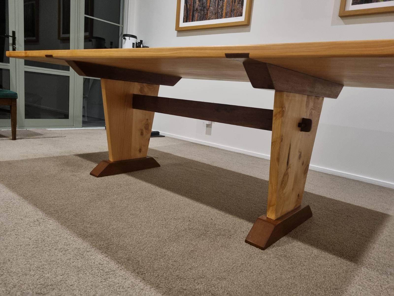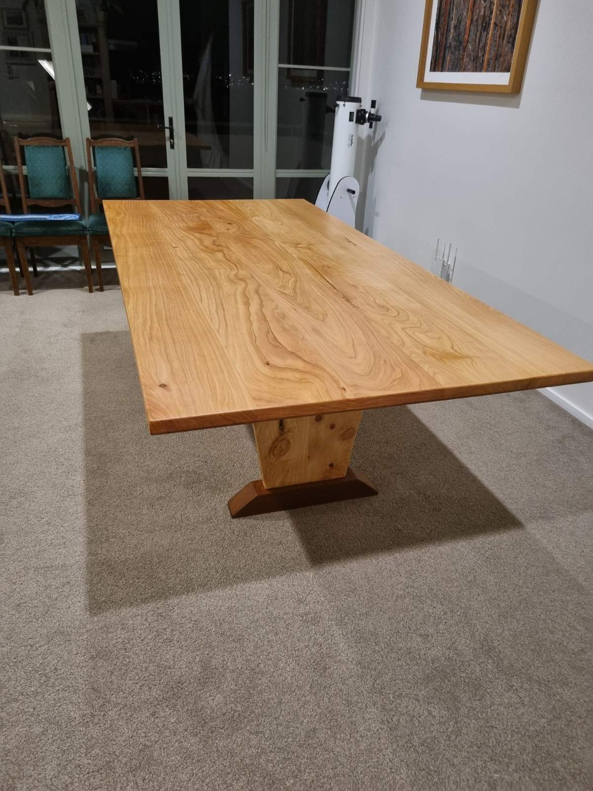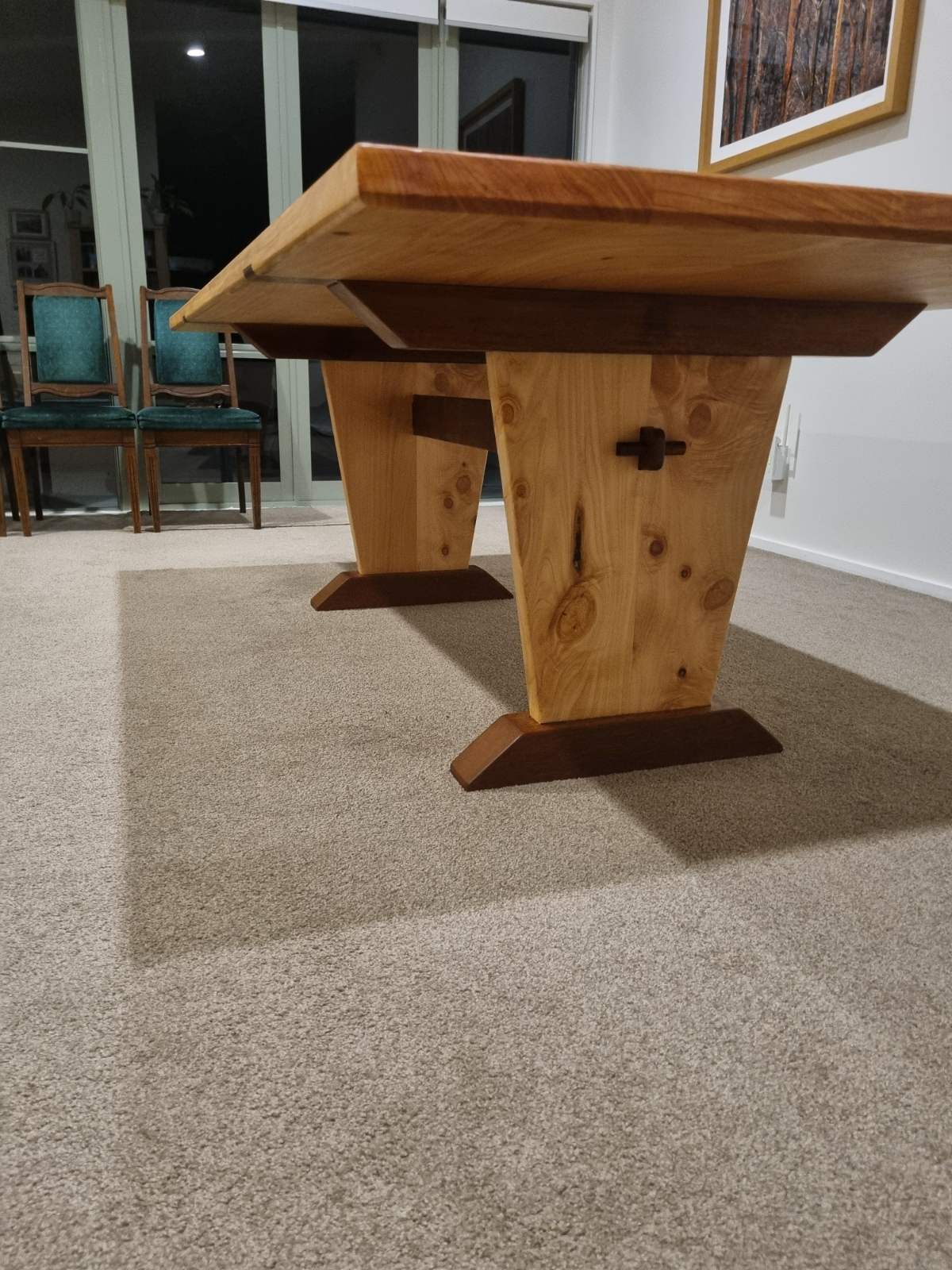 Handcrafted Macrocarpa Table made by our client Justin using our Macrocarpa Dressed Boards. Justin has made a masterpiece which we are sure his family will cherish for decades to come.